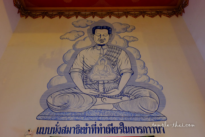 Les peintures murales de ce Montop sont intrigantes et mystérieuses pour le profane car elles illustrent, entres-autres, quelques particularismes de l’approche méditative de Luang Po Sot.