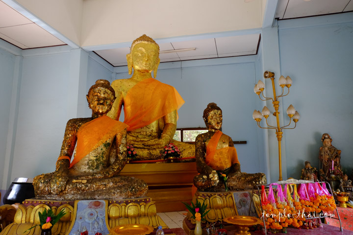Cette partie existe toujours, l’Ubosot y est d’ailleurs installé, en compagnie d’un Viharn qui abrite trois statues anciennes et plutôt originales par leur style.