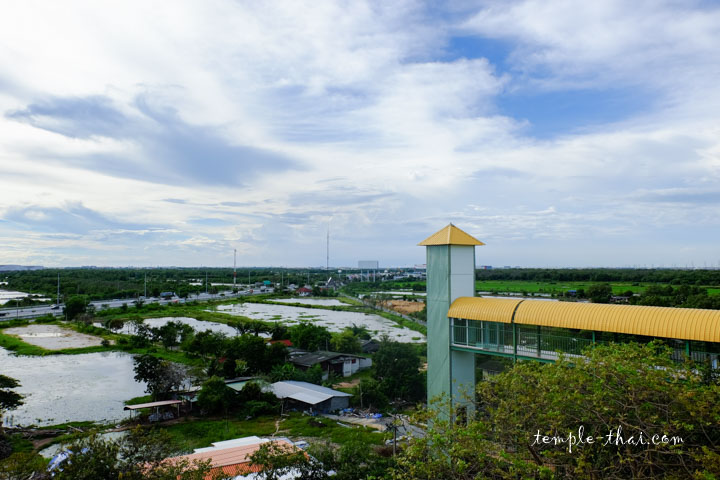 Une fois en haut, il y a plusieurs choses à voir, à commencer par l’imposante statue dos à la voie rapide. Outre le panorama depuis la plateforme, il faut savoir que cette statue est une réplique du plus célèbre bouddha de la province, dénommé Luang Po Sothon (หลวงพ่อโสธร).