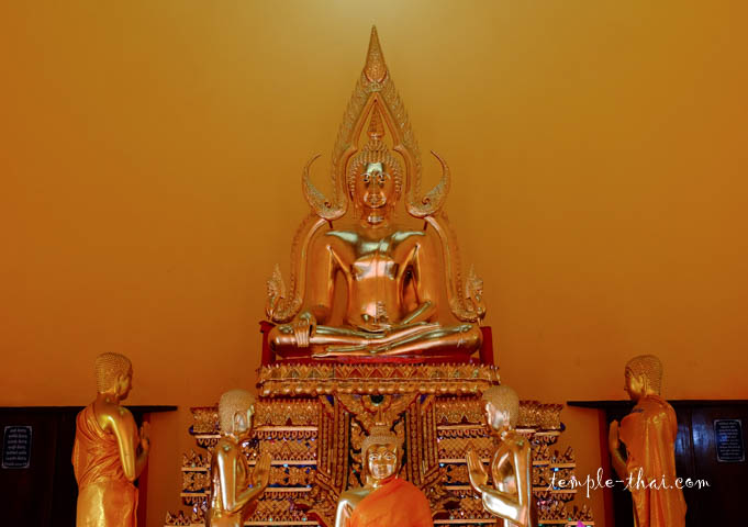 A l’intérieur jaunâtre et sans décorations excessives, la statue centrale de style sukhothaï s’avère être une réplique du célèbre bouddha de Phitsanulok, nommé Phra Phutta Chinnarat (พระพุทธชินราช).