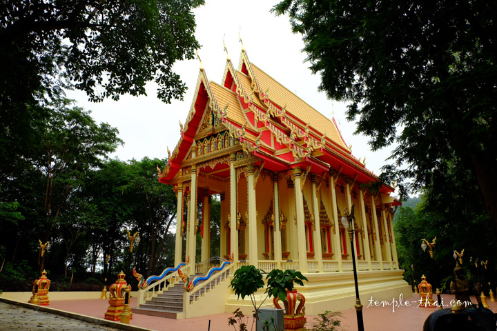 Dans la continuité se trouve l’ancien Ubosot, assez curieusement déposé sur un immense rocher dont le contour comprend de nombreuses sculptures représentant l’enfer.