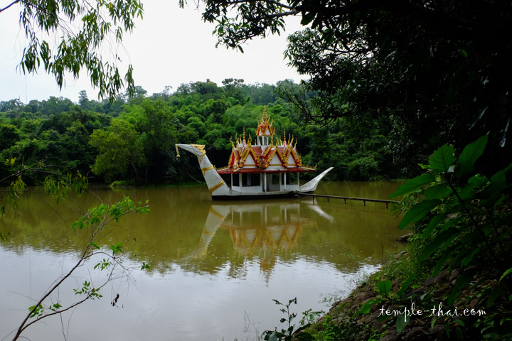 Je vous conseille ensuite de passer par l’arrière de cet Chedi pour découvrir un lieu étonnant, plus précisément un paisible étang au cœur de la forêt où a été installé un pavillon en forme de cygne-bateau.