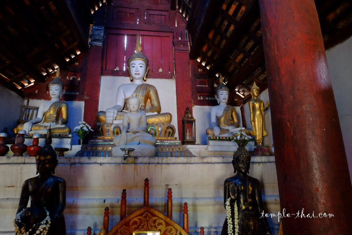 Sur l’autel, on retrouve quelques bouddhas blancs, dont le principal, surnommé Luang Po Khao (หลวงพ่อขาว), soit le bouddha blanc.