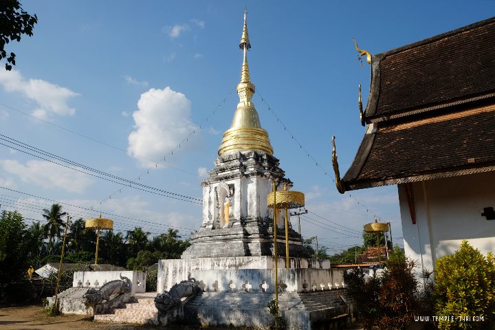 Il a été reconstruit à partir de 2002 en lieu et place d’un ancien Viharn d’après le panneau informatif.