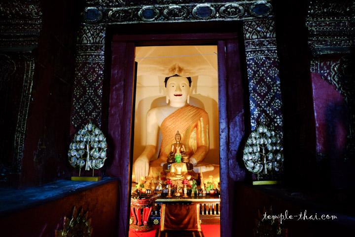 Comme on peut en déduire par sa position, il n’est pas installé dans le Viharn en tant que tel, mais dans une extension du Chedi/stupa que l’on observait depuis l’extérieur. C’est une configuration rare à Chiang Mai.