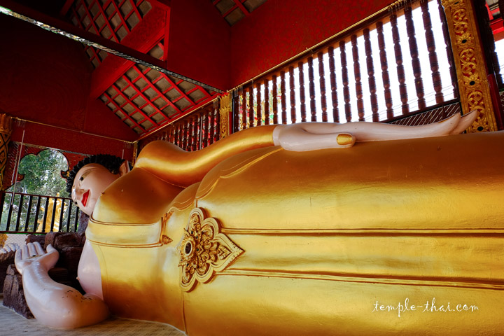 Un pavillon adjacent accueille enfin un joli bouddha couché. Moderne, plein de couleurs, il est d’une grande finesse par les lignes de son corps et de son visage.