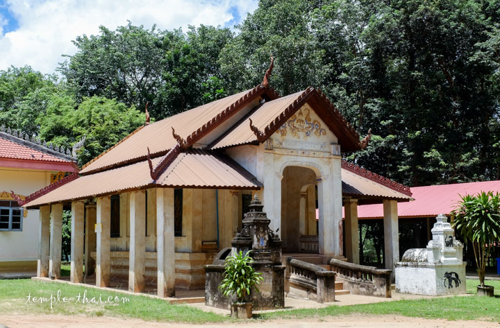 Édifié en 1938, son aspect extérieur diffère légèrement de ceux que l’on trouve ailleurs en Isan, essentiellement par ses dimensions.