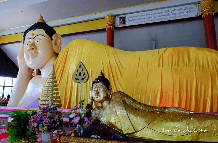Vous noterez également que devant le bouddha allongé se trouve sa modeste réplique.