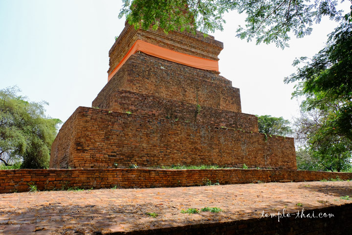 Doté d’une base carrée, il a été édifié en brique. À mesure qu’il s’élève vers le ciel, la structure se rétrécit, tel des escaliers, pour se terminer par une forme imitant un bouton de lotus, un héritage de l’influence de Sukhothaï.