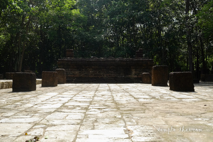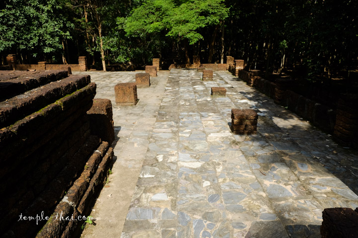 Dans la continuité, soit du côté nord-ouest, est positionné l’Ubosot et son sol en pierre, à l’exception de l’endroit où siégeaient les moines autrefois, recouvert d’ardoise.