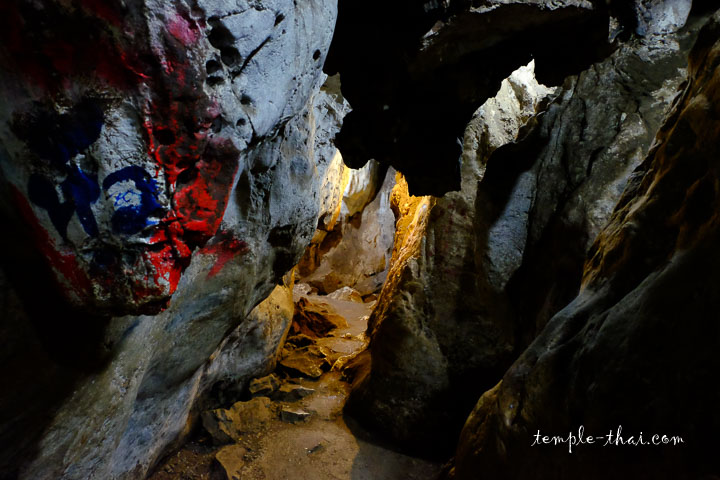 Vous passez alors par des couloirs étroits et plusieurs pièces, chacune ayant un nom et une fonction particulière, telle celle où siégeait autrefois un rocher en forme de crocodiles (Hong Jarakae – ห้องจระเข้), et une autre qui offre un puits de lumière vers le ciel permettant à des racines de descendre jusque dans la cavité (Hong Saï Yoï – ห้องไทรย้อย).