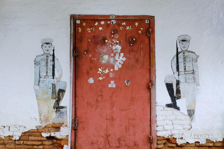Dans le prolongement du stupa, vous trouvez notamment un Sim Isan (สิมอีสาน) et ses jolis gables bleutés, alors que des soldats aux traits quasi-européens gardent la porte d’entrée de manière décontracté.