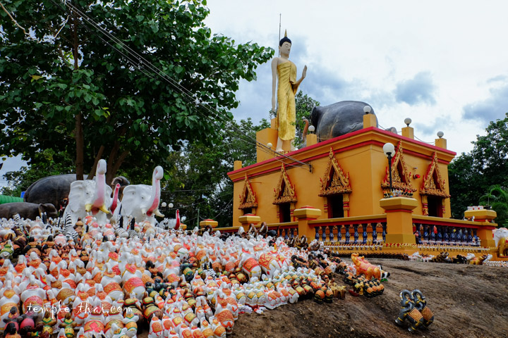 À une trentaine de kilomètres au nord de la ville de Khon Kaen, en bord d’autoroute, on peut difficilement manquer le Wat Pa Kham Hua Chang tant il est populaire dans la région.
