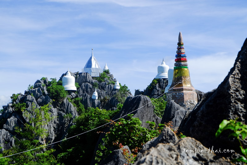 Le sanctuaire le plus à gauche offre le meilleur panorama sur les pics rocheux chapeautés par les stupas.