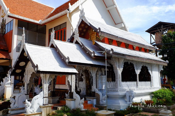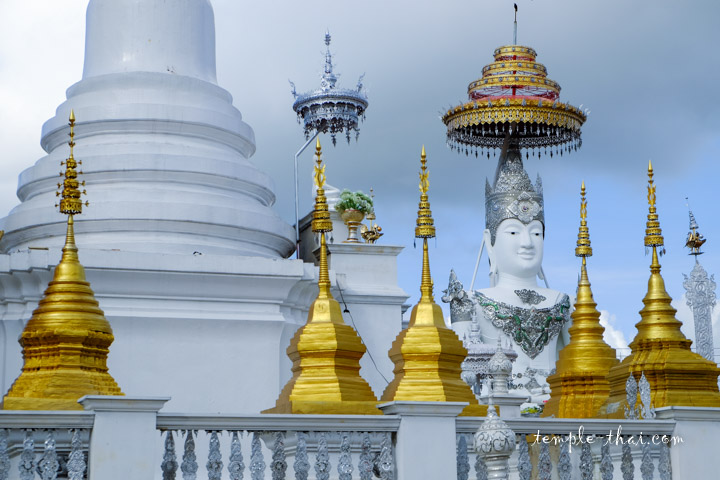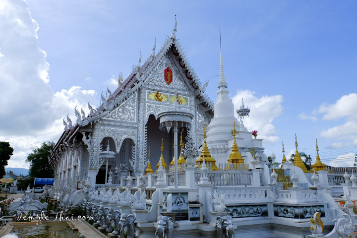 Ce monastère se concentre autour de son Viharn aux tons clairs, en réalité un mélange entre le blanc et la couleur argent, notamment à travers une multitude de morceaux de miroirs apposés sur les murs et les ornements.