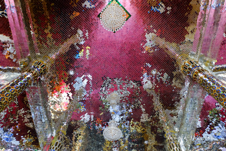 Par une légère dissemblance, les colonnes arborent également des miroirs mais colorés, dessinant des motifs.