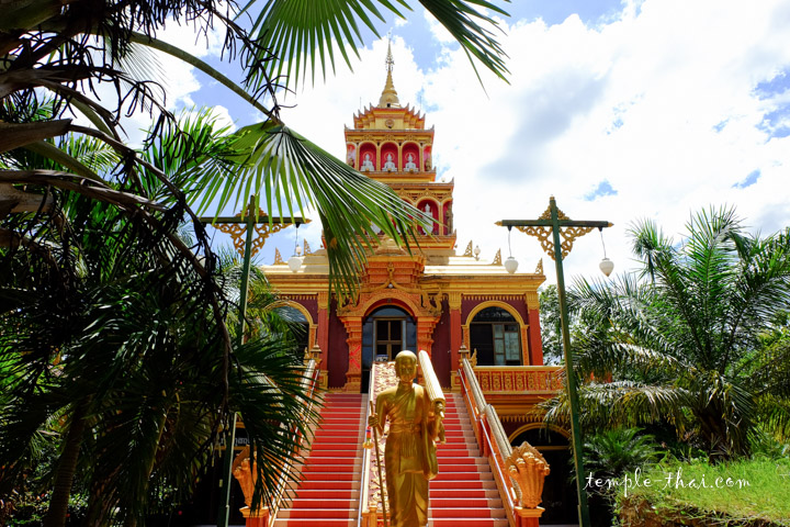 Dans ce monastère, vous ne trouverez pas de vieil édifice en bois, mais plutôt des constructions modernes dispersées au milieu de cocotiers.
