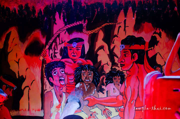 Chaque scène représentée est la conséquence d’un Bap (บาป), c’est-à-dire un démérite ou une mauvaise action ayant des répercussions directes sur le karma, parfois cruelles.