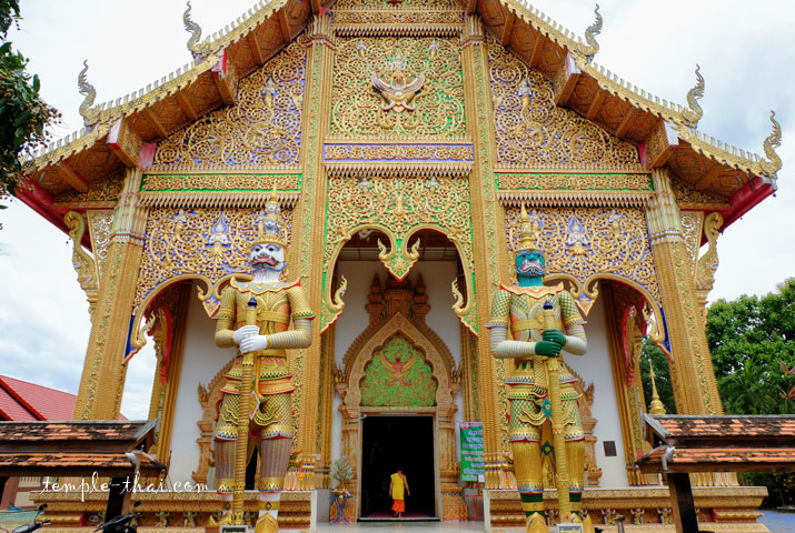 À la fois profond, large et surtout haut, l’édifice est protégé par deux vaillants gardiens de la mythologie, des Yak (ยักษ์).