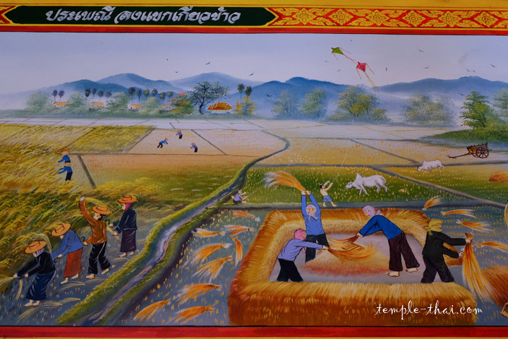 La raison provient peut-être des poutres en bois, ou alors des peintures murales illustrant essentiellement la vie à la campagne, ainsi que les festivals religieux qui rythment le calendrier.