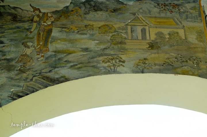 Sur l’édifice, ainsi que l’intérieur des murs du porche, vous pourrez découvrir des peintures murales anciennes de quelques dizaines d’années. Elles dépeignent essentiellement des jatakas, c’est-à-dire les anciennes vies du Bouddha Shakyamuni, mais aussi quelques scènes de la vie du Bouddha.