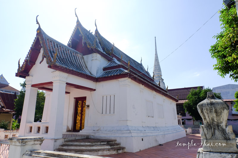 À notre époque, ce monastère se résume à son Ubosot suivi par un stupa en forme de cloche. Confirmant l’architecture de la fin de la période Ayutthaya, l’Ubosot présente un aspect sobre mais massif.