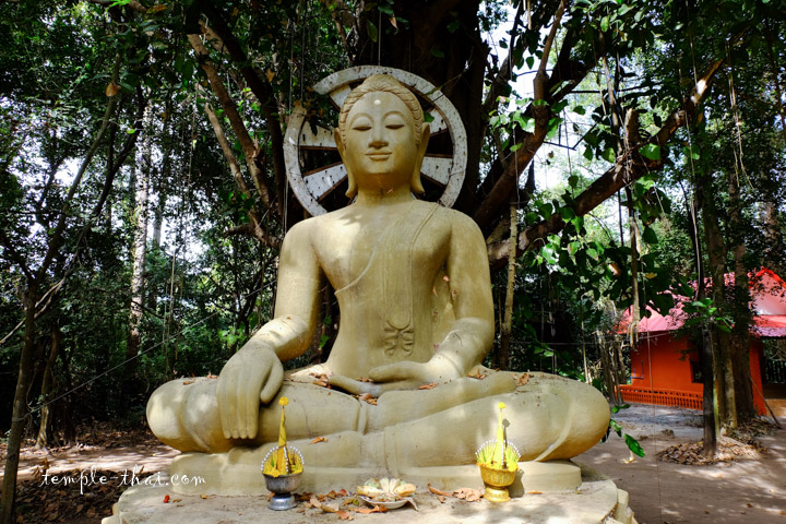 Sur l’autre rive, vous êtes dans l’enceinte du Wat Pa Ko Keng à proprement parler. Il s’agit d’un temple de la forêt, et hormis quelques bouddhas dispersés dans la nature et des cochons en liberté, il n’y a pas grand chose à voir. La vie monastique est frugale, les bonzes suivant une discipline stricte.