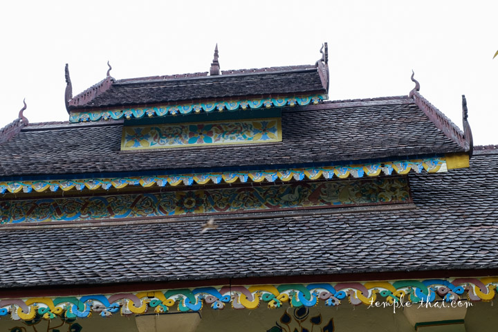 L’éclat de ses ornements, notamment la divinité Garuda sur le fronton, ou encore ses frises colorées sous les différents niveaux de la toiture, suggèrent que ce Sim fut restauré dans les dernières années.