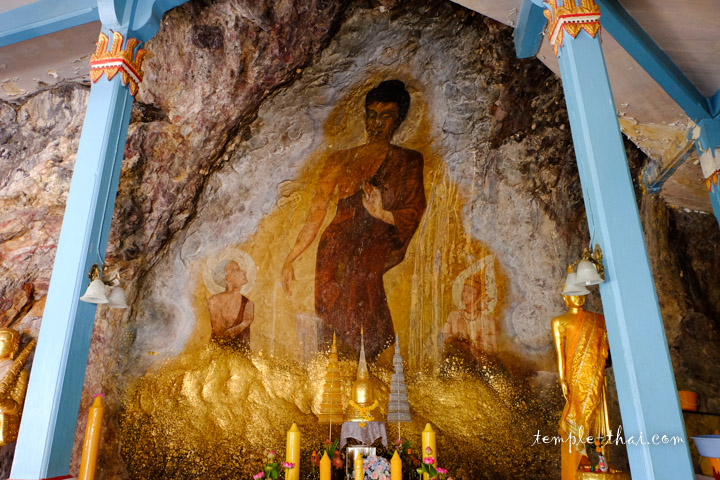 Cette peinture murale, que les fidèles recouvrent d’or, est placé dans un Montop semblant épouser la forme de l’immense bloc de roche.