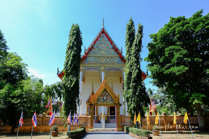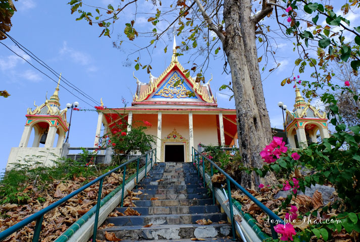 L’enceinte du monastère, notamment l’Ubosot, est situé au pied de la colline, côté sud.