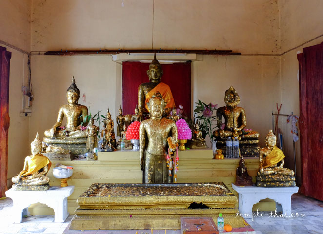 Quelques marches supplémentaires vous mènent au Montop. Il accueille l’empreinte sacrée. Cette salle héberge également de vieilles statues du Bouddha, rendues encore plus anciennes par les couches successives de feuilles d’or.