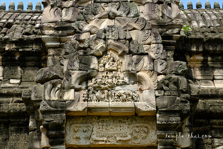 Quant au Prasat principal, construit en grès et pointant vers un axe sud-est, soit approximativement la direction d’Angkor, il est magnifique, tant par ses proportions que les innombrables détails de ses ornements.