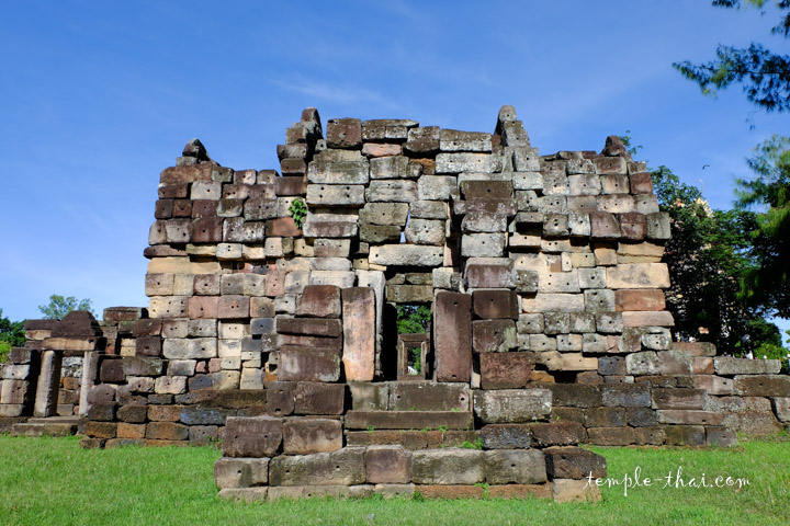 L’une des originalités de cet ārogyasālā est que l’entrée du mur d’enceinte, le gopura, a été bâti en grès, alors que le Prasat, c’est-à-dire la tour sanctuaire, est quant à elle en latérite.