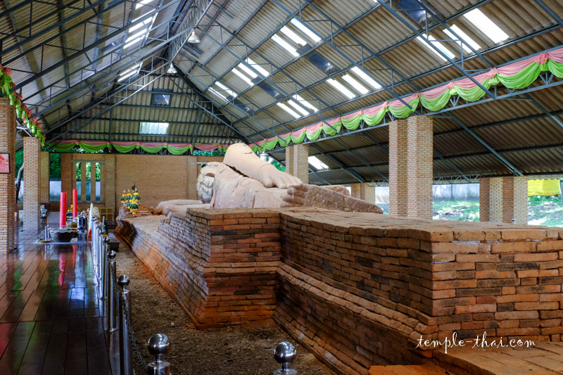 Restauré, ou du moins réassemblé au début du XXe siècle, le bouddha mesure 13 mètres de long. Il fut taillé dans plusieurs blocs de grès. C’est le plus ancien du royaume puisque les estimations énoncées sur le panneau informatif le font dater du VIIIe siècle, soit il y a 1300 ans !