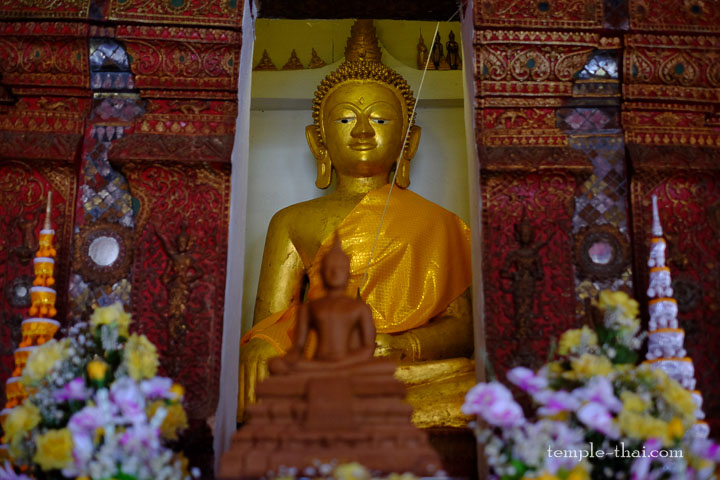 Hébergé dans l’Ubosot, il a la particularité, loin d’être unique dans le nord de la Thaïlande mais tout de même assez rare, d’être abrité sous un Kong (โขง), une sorte de coffre qui fait office d’abri pour le protéger.