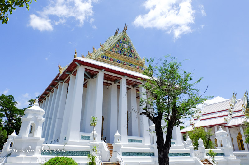 La zone expressément religieuse est protégée par un mur d’enceinte. À l’intérieur, l’Ubosot est ceinturé entre deux édifices, un Viharn royal et une Sala Kan Parian.