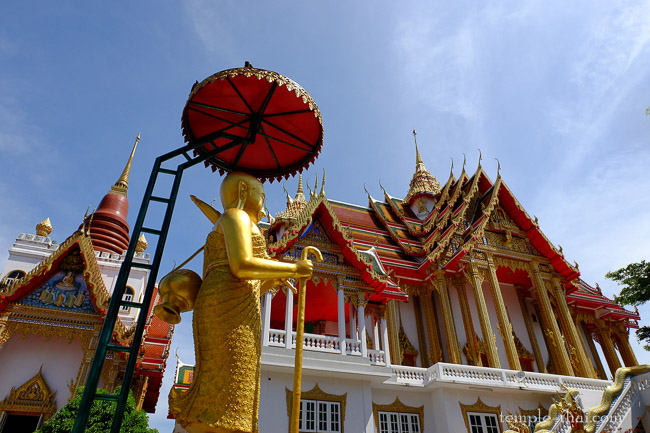 Situé directement en bordure du bien nommé canal Bang Bua Thong, son Viharn domine le paysage. Placé sur une plateforme surélevée, le toit de l’édifice se trouve à plusieurs dizaines de mètres du sol.
