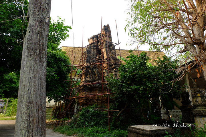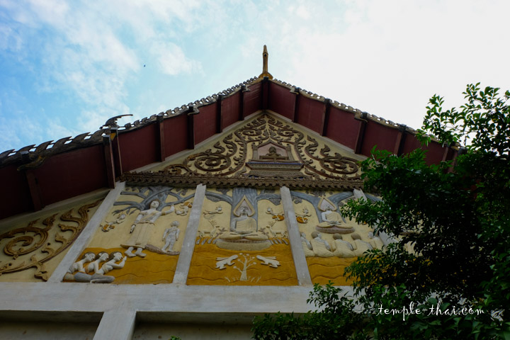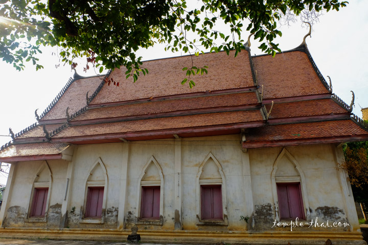 Son Ubosot parait quelque peu délaissé avec ses ornements en stuc tandis qu’un Chedi adjacent se décompose lentement.