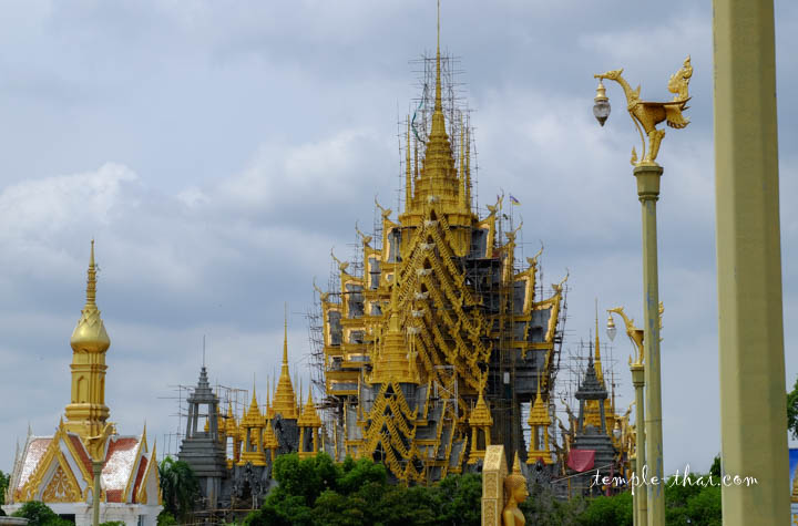 En arrivant depuis le pont Supan Kanlaya (สะพาน​สุพรรณ​กัลยา), vous apercevez déjà au loin la toiture dorée et ses multiples niveaux.