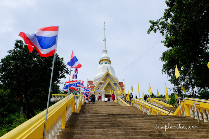 Avec un peu d’effort, vous arrivez aux édifices religieux du monastère, à savoir l’Ubosot, puis un Montop (มณฑป) près du sommet.