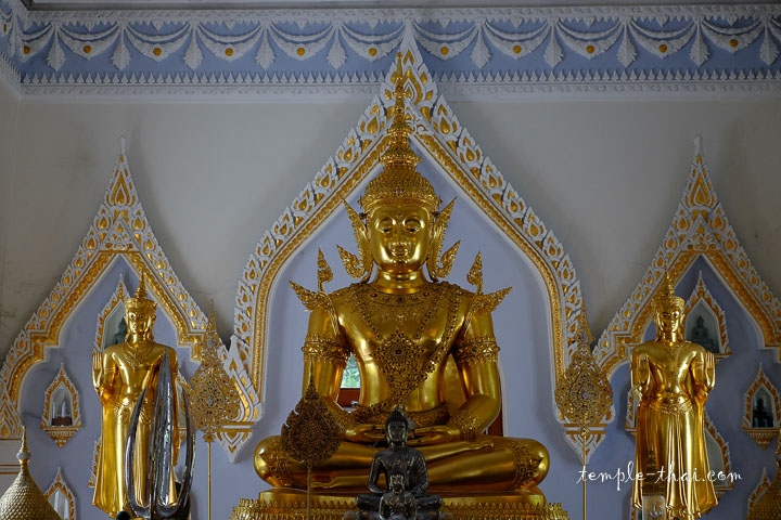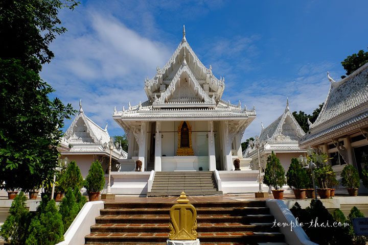Tout aussi blanc, son intérieur abrite plusieurs bouddhas, notamment le principal, portant les habits royaux.