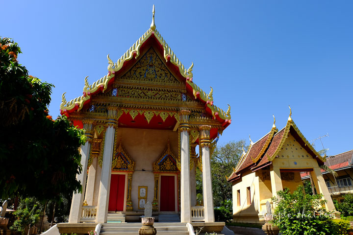 Ici, point de bouddha monumental, mais un Ubosot moderne accompagné d’un stupa de forme pyramidale datant dès début de la période Rattanakosin.