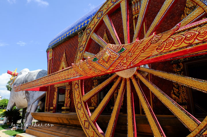 Ces derniers bénéficient d’un caractère sacré via la taille de leur anatomie alors que les roues du char ressemblent à des Dharmachakras (ธรรมจักร), soit des roues du Dharma, la roue de la loi dans le bouddhisme.