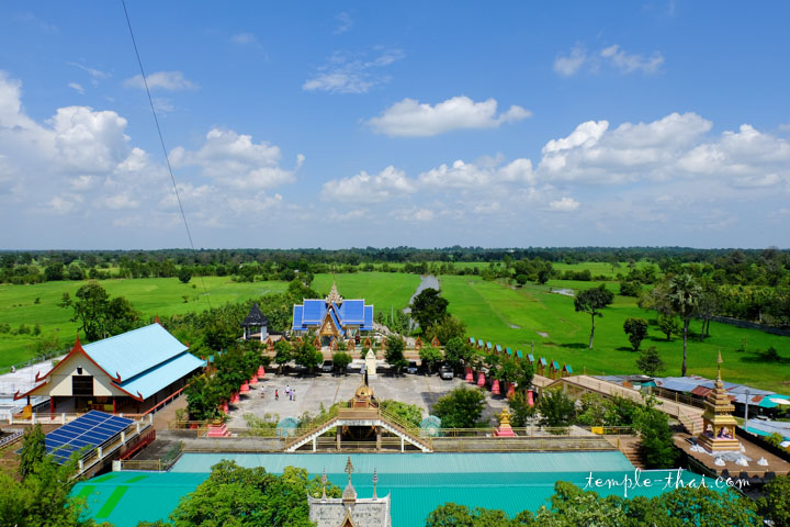 Le dernier étage, là où les précieuses reliques (Phrathat – พระธาตุ) sont entreposées, le panorama est dégagé pour admirer la vue sur la campagne environnante et ses rizières à n’en plus finir.