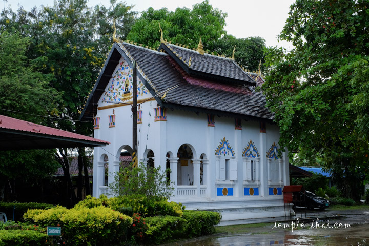 A la suite de ce Viharn se trouve par ailleurs un Sim (สิม), c’est-à-dire une salle d’ordination dans cette région de la Thaïlande. Ce Sim restauré se distingue par ses motifs colorés en stuc et ses gardiens armés sous le porche d’entrée.