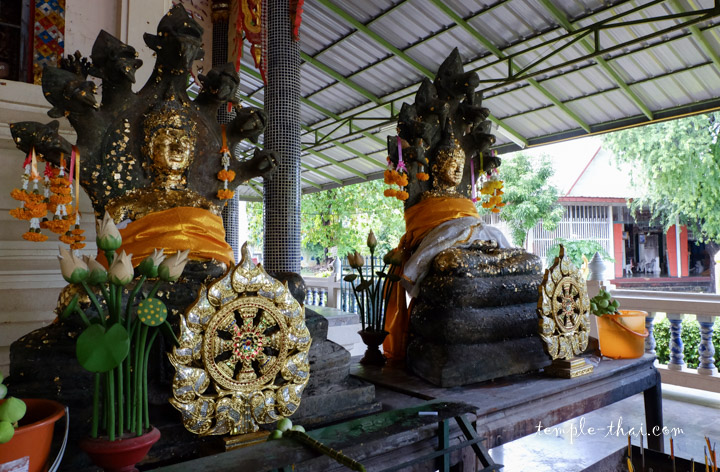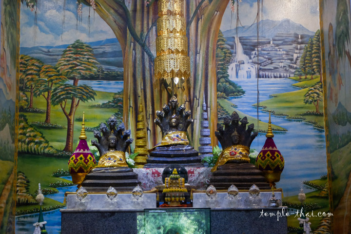 Placé dans un modeste Viharn, Luang Po Nak (หลวงพ่อนาค) ne fait pas référence à une seule effigie du Bouddha, mais à trois statues similaires, pas tant par leur style qui diffère légèrement, que par leur posture où le Bouddha est représenté protégé par le serpent nommé Mucalinda.